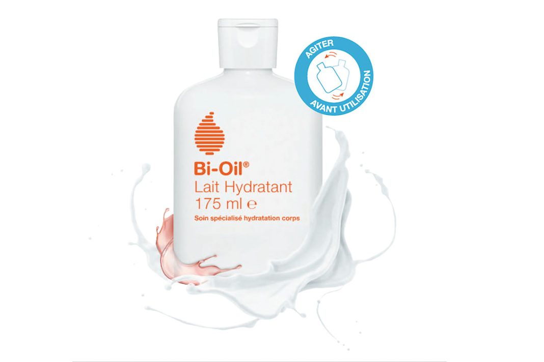 Bi-Oil a créé un lait hydratant très rapidement absorbé par la peau, ce qui permet de s’habiller aussitôt après son application.