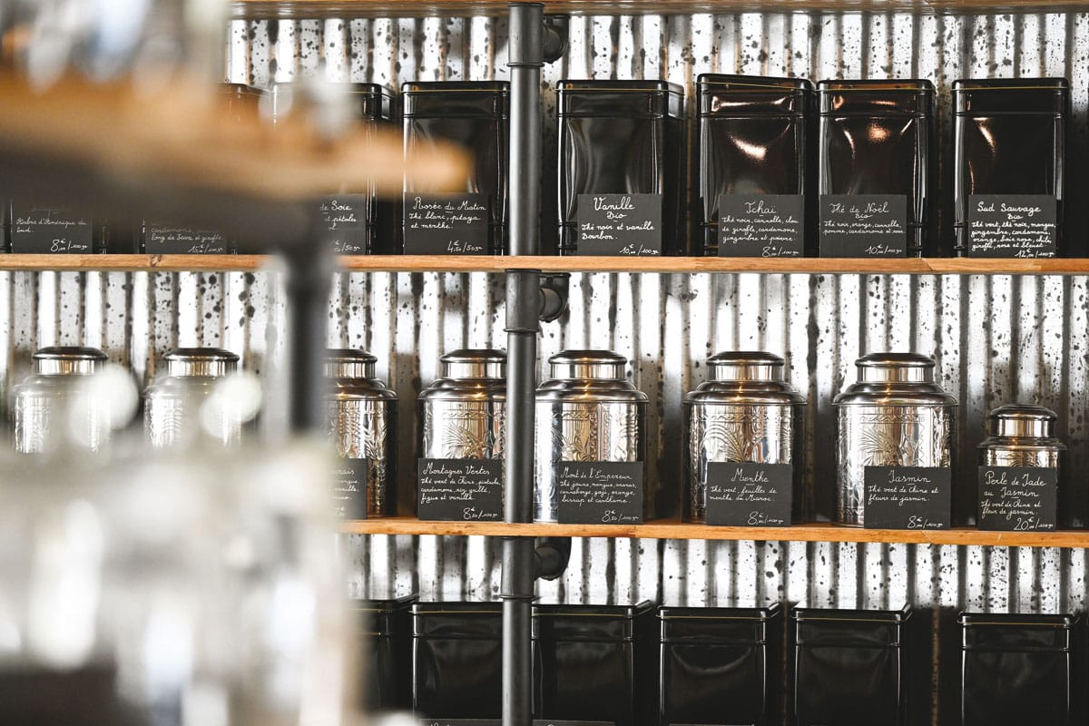 Auf den Etiketten sind Art und Herkunft jedes Produktes angegeben.. Zwei Marken wurden von etc. gegründet. : Oté Réunion für seine Teemischungen und Cerise für vor Ort geröstete und in Beutel verpackte Kaffeespezialitäten. Ein Blatt zeigt an, wann, wo und von wem die gekauften Kaffeebohnen angebaut wurden. Ein Angebot, das durch die Auswahl einiger Kaffeemaschinenmarken ergänzt wird. Die Marke ist im Laufe der Jahre gewachsen und hat einen Stamm treuer Fans..