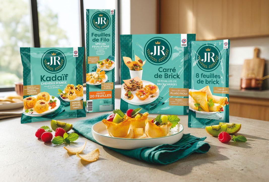 Née en 1980, Sofrabrick est un acteur historique de la feuille de brick en France, et la première entreprise à avoir industrialisé sa production pour la grande distribution. Reprise en 1984 par la famille Castro, elle enregistre aujourd’hui un chiffre d’affaires de 22 M€, en progression de 30 % sur cinq ans. Sofrabrick réalise 80 % de son activité en France – où elle occupe avec sa marque JR 60 à 70 % de parts de marché –, et 20 % à l’international. Dans un contexte marqué par l’intensification des produits importés à bas prix et par une fragmentation accrue de l’offres, Sofrabrick engage aujourd’hui une refonte complète des packagings de JR avec l’objectif de clarifier sa gamme, de muscler sa visibilité dans les circuits de vente, et de soutenir la performance d’une catégorie de produits sous forte pression concurrentielle. À partir d’avril, la marque déploie une nouvelle identité visuelle sur l’ensemble de ses 22 références proposées. Cette évolution s’inscrit dans une stratégie globale de repositionnement visant à consolider sa suprématie et sa différenciation en rayon.
