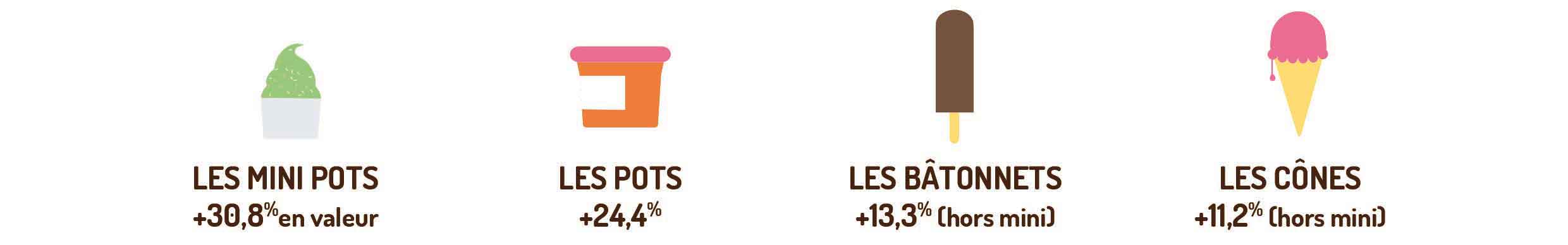 Im Jahr 2020, météo et confinements aidant, les Français n’ont jamais autant cherché le plaisir et l’évasion dans leurs moments de consommation. Synonyme de gourmandise, les glaces ont répondu à leurs attentes. Ergebnisse : + 10,3 % de croissance en valeur à 1,26 milliards d’euros, + 8,9 % en volume pour atteindre les 171,8 millions de kg vendus ! Après une année 2019 en demi-teinte, la catégorie des glaces a signé une saison historique. Parmi les produits stars de cette année, les minipots (+30,8 % en valeur), du kannst (+24,4 %), et les bâtonnets (+13,3 %) et les cônes (+11,2 %) hors mini. Cette profondeur de l’offre couplée à sa premiumisation ont séduit de nouveaux consommateurs : près de 440 000 acheteurs supplémentaires, soit plus de 24 millions de foyers qui ont consommé des glaces en 2020 (85,4 % de taux de pénétration).