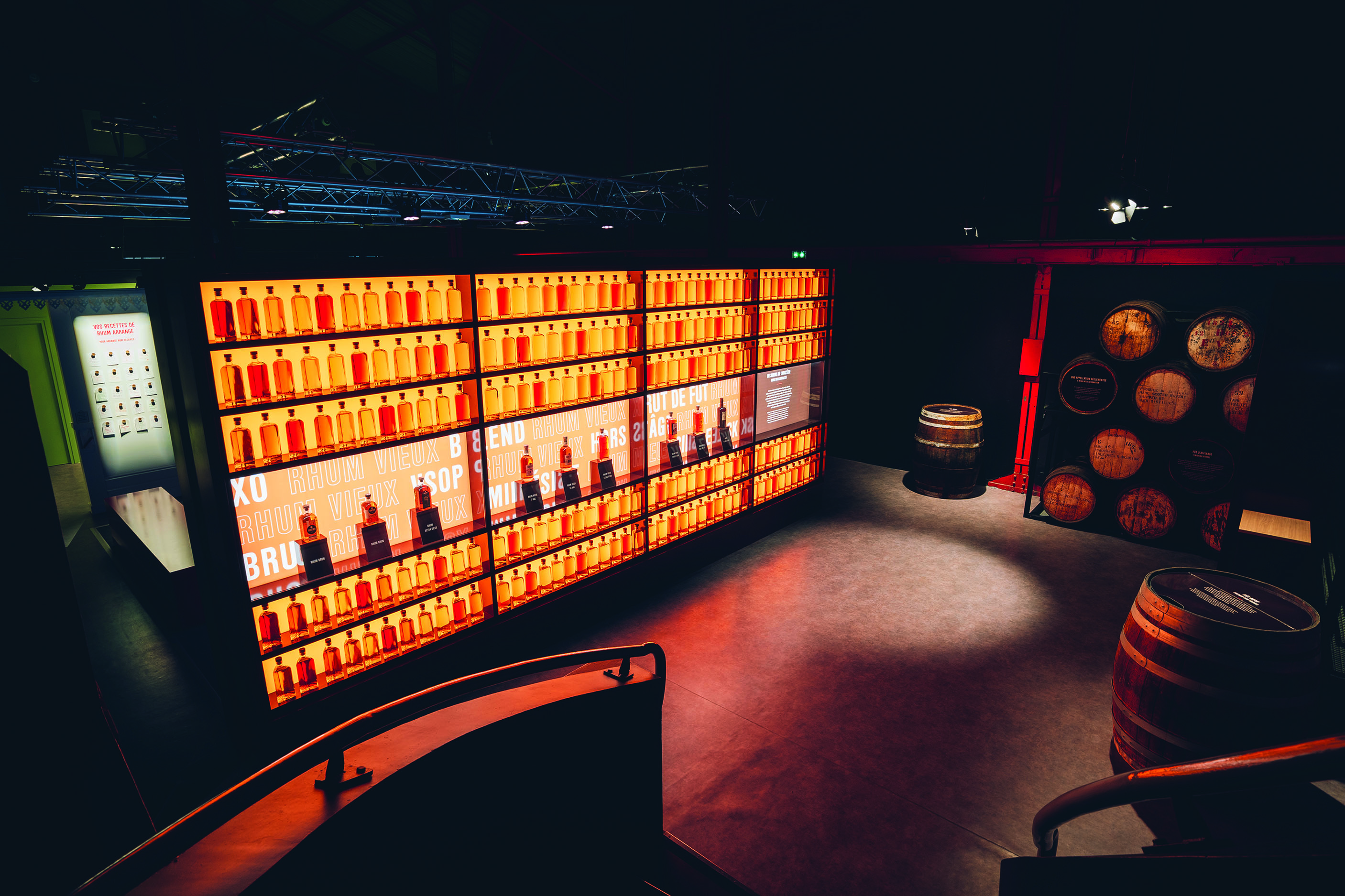 Benjamin Boulanger, directeur d’exploitation, au milieu des cuves de macération, étape de la fabrication des Arrangé Isautier. Rechts, aperçu du chai de vieillissement où s’effectue l’élevage des rhums. Unten : la colonne de distillation et l’atelier d’embouteillage d’une capacité de 3 millions de bouteilles par an.