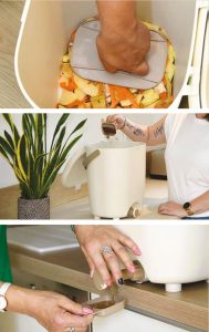 Fabriqué à partir de 50 % de plastique recyclé, le seau à compost Kitchen 3,5 L Pure possède le même design élégant et les mêmes couleurs que le Bokashi 15 L Pure. Compact et d’une capacité de 3,5 L, il trouve sa place sous un évier ou sur un plan de travail. Il permet de collecter les épluchures de cuisine et de les stocker pendant plusieurs jours avant de les mettre dans le Bokashi ou dans un composteur de jardin. Il limite les manipulations et les odeurs et évite d’ouvrir le Bokashi plusieurs fois par jour, afin de laisser le processus de fermentation par anaérobie arriver à maturation. Sa cuve est facile à nettoyer et évite que des résidus de matières organiques en décomposition ne restent coincés dans le fond.