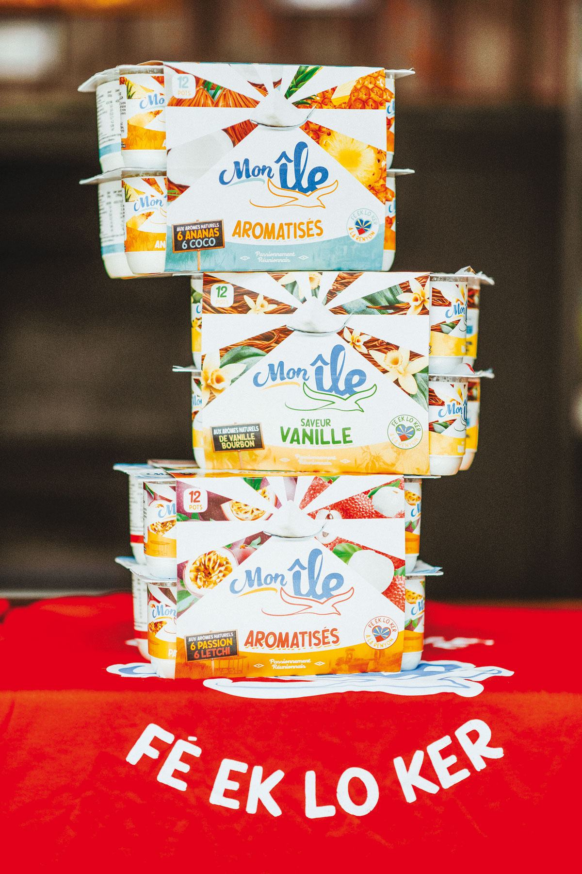 La Team Lokal a été remobilisée pour concevoir la première extension de gamme de la nouvelle marque. Répondant à une attente des consommateurs, Mon Île s’invite sur le segment des yaourts brassés aux fruits mixés, mais avec, wieder da, un brassé différent de tous les autres. On y retrouve l’onctuosité tout en rondeur caractéristique de la marque locale, associée à la gourmandise de délicieux fruits mixés. Trois nouvelles références Mon Île font leur entrée en rayon en pack de 12 (6 par fruit) : passion et goyave, mangue et letchi, fraise et vanille.