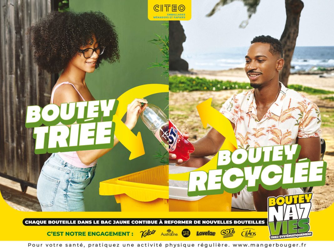 La campagne, « Boutey na 7 vies », vise à rappeler que chaque bouteille plastique correctement triée peut être recyclée et contribuer à fabriquer de nouvelles bouteilles. Chaque année à La Réunion, près de 200 millions de bouteilles en plastique sont mises sur le marché, soit environ 6 000 tonnes de plastique. Noch, selon les données de l’Ademe, le taux de collecte des emballages recyclables à La Réunion s’élève à seulement 31 % contre 58 % au niveau national. La majeure partie des bouteilles plastique finit encore dans la poubelle grise ou dans la nature. Le PET est pourtant recyclable à plus de 95 % et peut être transformé en bouteilles, textiles ou emballages après plusieurs étapes de traitement : broyage, lavage, transformation en granulés et réutilisation industrielle. L’objectif européen de 90 % de collecte d’ici 2029 semble un peu lointain sur l’île mais divers chantiers ont été ouverts pour l’atteindre à commencer par la simplification des règles de tri, qui permet le 1er janvier 2026 de déposer tous les emballages en plastique dans le bac jaune.