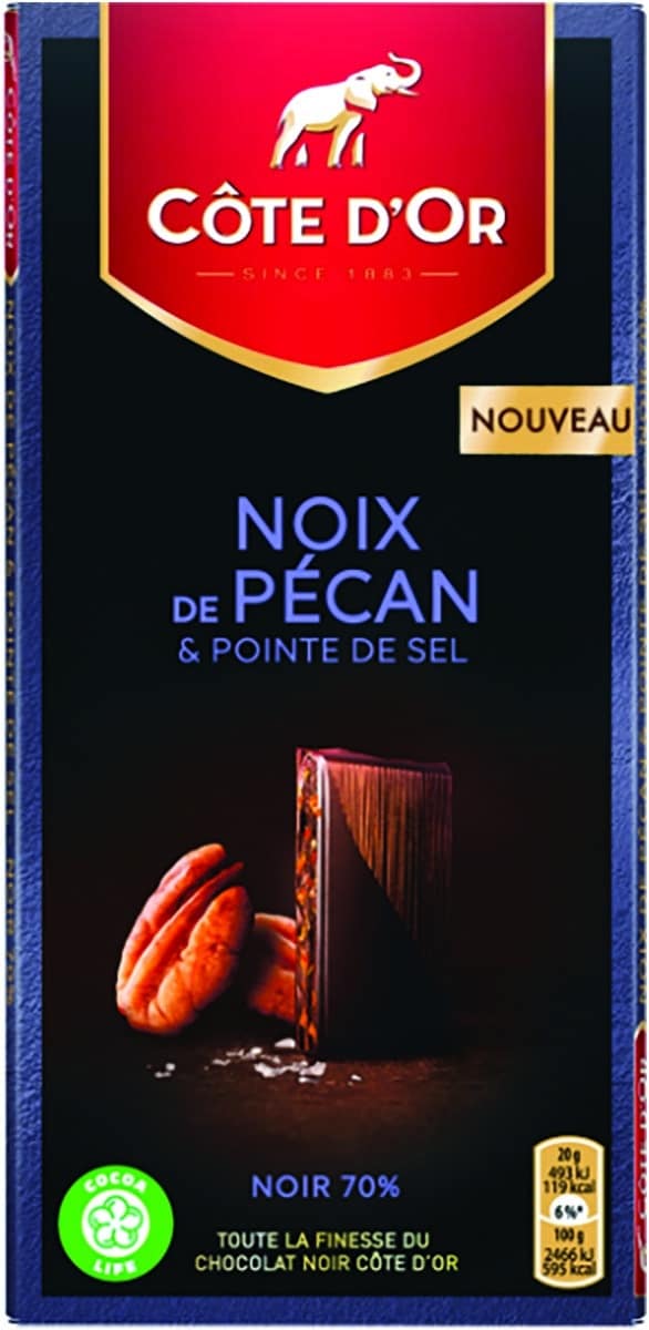 Pekannuss, die fünftbeliebteste Nuss der Franzosen, sorgt auch in der Schokoladenabteilung im Tasting-Segment an der Côte d’Or für Neuigkeiten. In diesem Schwergewichtssegment des Tablet-Marktes, Côte d’Or vervollständigt sein Angebot mit der neuen Pekannuss-Zartbitterschokolade 100 g. Die Intensität einer 70 % dunklen Côte d’Or-Schokolade kombiniert mit der Knusprigkeit und Köstlichkeit von Pekannüssen. Eine einzigartige Salz-Pekannuss-Sorte auf dem Markt. Intensiv auf allen Ebenen.