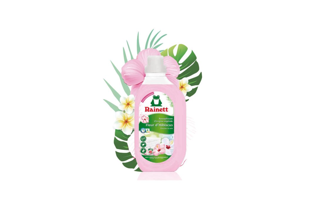 Rainett a revu intégralement sa gamme d’adoucissants. Nouveaux flacons 100 % recyclés et entièrement recyclables (bouteille en rPET transparent et un bouchon doseur en rPP). Nouvelle formule hypoallergénique, respectueuse de l’air intérieur (notée A+ par le label indépendant Air Label) et sans conservateurs ajoutés. Nouveau format maxi 900 ml (45 lavages et un prix très doux). C’est dans ce contexte qu’une nouvelle fragrance intègre la gamme : Fleur d’Hibiscus. Un parfum floral, frais et ensoleillé. La gamme d’adoucissants compte donc à présent 4 référencesavec Fleur de Coton, Aloe Vera et, pour les peaux très sensibles et atopiques, Zéro %, parfümfrei, Ohne Färbung, sans conservateur et certifié Ecarf (Centre européen de recherche sur les allergies).