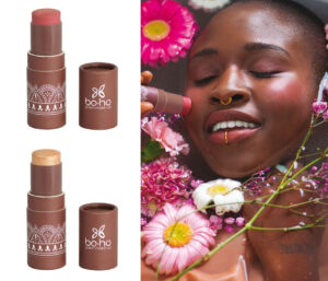 For his new collection, Boho Green Make-Up has developed a cocooning universe with four new natural makeup references, certified organic and vegan : un mascara Green Volume & Black length, a golden highlighter stick, a pink blush stick and a Jumbo transparent lip care pencil. Light pink, shiny and glowy are the key shades of this new collection, which are inspired by the bohemian universe inscribed in the brand's DNA and invite you to a moment of relaxation with a healthy-looking and radiant complexion, hydrated lips and a charming look. But beyond his universe, the Romance Flower collection is especially rich in innovations with a new mascara, highly anticipated two years after the last mascara innovation presented by the brand, also with a multi-use stick format presented for the first time and a Jumbo developed at the border of skincare and makeup. A collection available in limited edition, from October at Monoprix, in pharmacies and parapharmacies, in organic stores, institutes and on the e-shop www.bohocosmetics.com