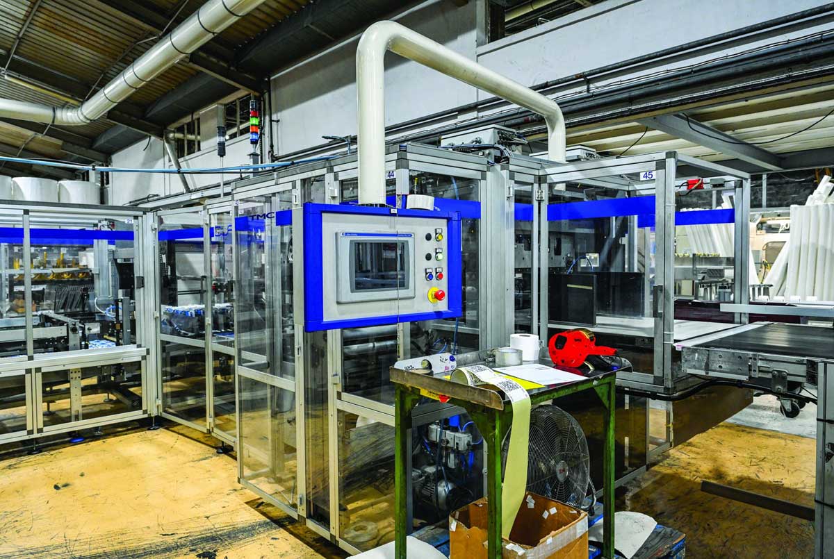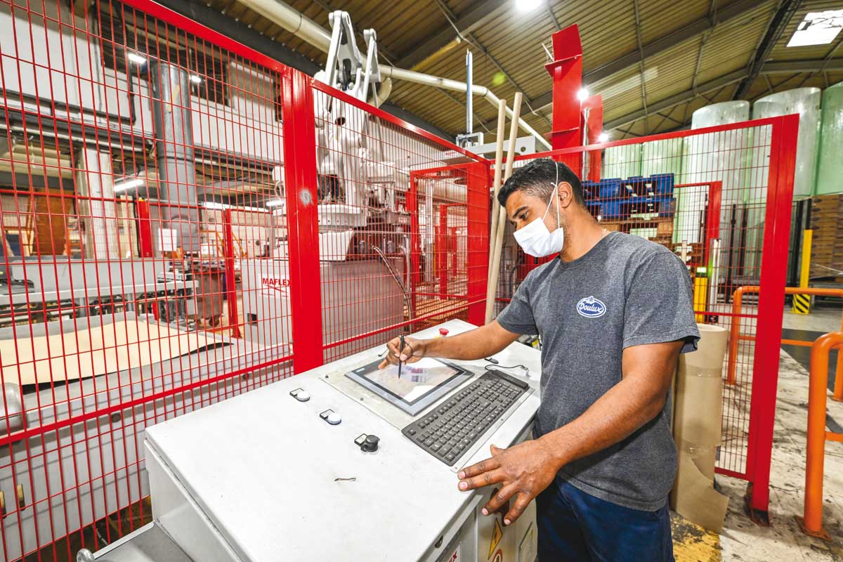 Doulux renouvelle son outil industriel depuis plusieurs années. Ce fut d’abord le matériel d’impression qui a permis de produire plus et plus vite et de diversifier les décors sur les papiers. More recently, c’est l’automatisation de l’emballage de tous les produits. Une emballeuse ultra-moderne mémorise les réglages des formats des différents packs d’essuie-tout et de papier hygiénique grand public. Plus besoin de régler chaque format manuellement. Dans la continuité de l’emballage, la palettisa-tion, tâche contraignante et répétitive, est désormais effectuée par un robot. Le stockage des différentes références s’en trouve considérablement facilité et accélé-ré. Un autre outil industriel ouvre la voie au développement de la clientèle profes-sionnelle (le “ hors domicile ” du papier sanitaire). La nouvelle chaîne pro intègre fabrication et emballage. Résultat de tous ces investissements : un gain de productivi-té général qui permet à l’entreprise de poursuivre sa montée en qualité tout en optimisant ses coûts de production, c’est-à-dire sans augmenter ses prix.