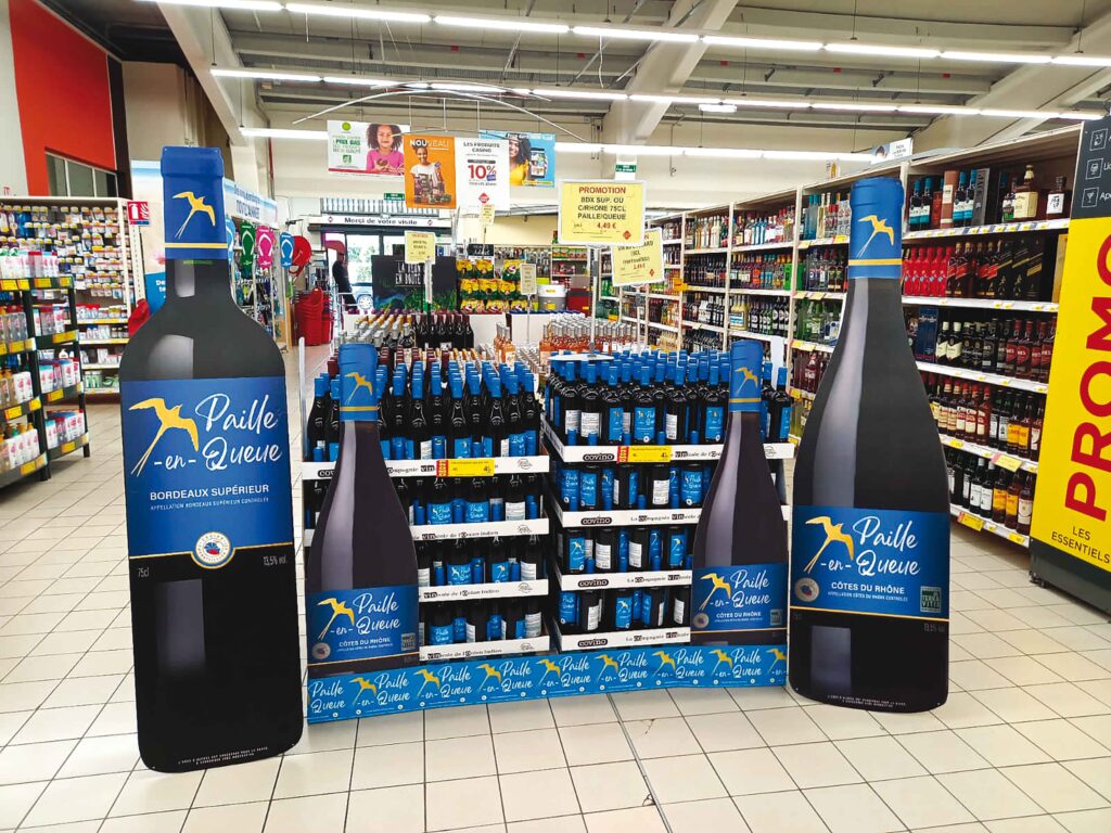 Our choice fell on two products : an AOC Côtes-du-Rhône certified Terra Vitis and an AOC Bordeaux Supérieur. The Bordeaux Supérieur label, corresponds to stricter specifications than a generic AOC Bordeaux. These two wines, under the Paille-en-Queue brand, come from a selection of wines from the Castel group. These two wine regions, are the two regions most represented in the shelves in Reunion. At the end of 2021, we estimate that nearly 55% of appellation wines purchased in mass distribution, come from the Bordeaux region, followed by wines from the Rhône valley representing a little more than 10% of sales.