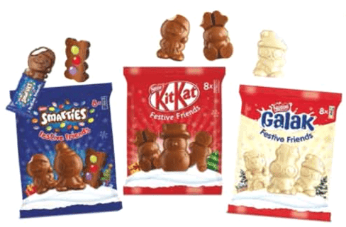 Demand for family confectionery is exploding. To meet this need to share with children, Nestlé offers three new confectionery references under the Smarties brands, Kit Kat et Galak. These are bags containing eight individually packaged mini figurines. This offer accessible to all is presented in a dedicated multi-brand panache box. Ideal for pre-campaign, gift confectionery for children within the home can be offered as a snack or consumed informally during the day to keep children waiting before the holidays ! At the same time, the Smarties and Kit Kat children's confectionery ranges are being renewed. Note the giant tube of Smarties with 100% blue Smarties ! Smarties continues its zero plastic commitments for Christmas with the redesign of the entire range in 100% paper with new attractive designs.