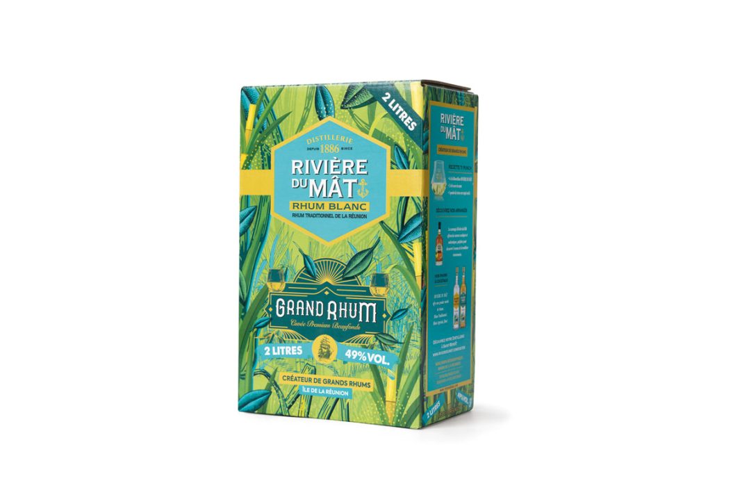Marque historique de La Réunion, leader sur le rhum vieux et n°2 sur les rhums arrangés, Rivière du Mât enrichit son offre avec le premier cubi 2 litres de rhum blanc traditionnel 49° en GMS.