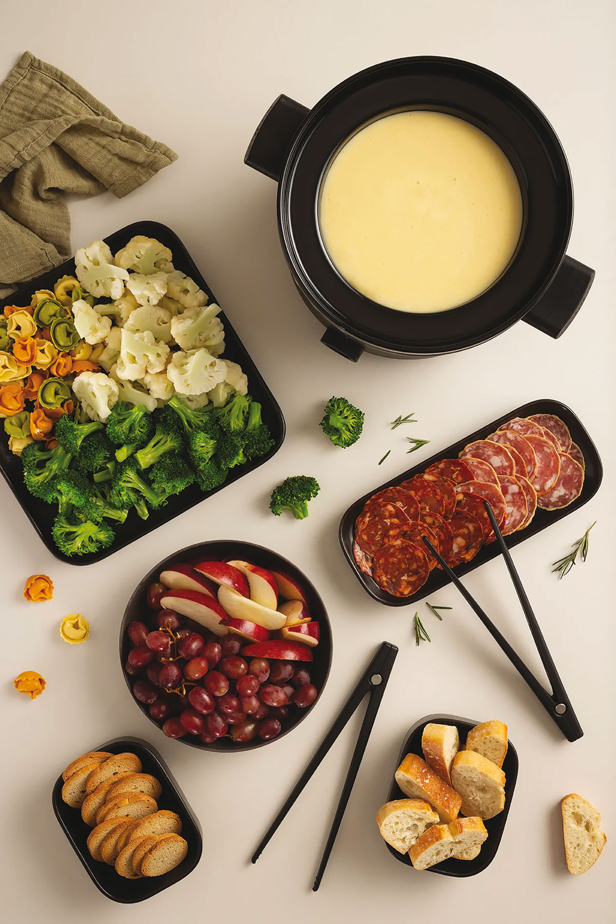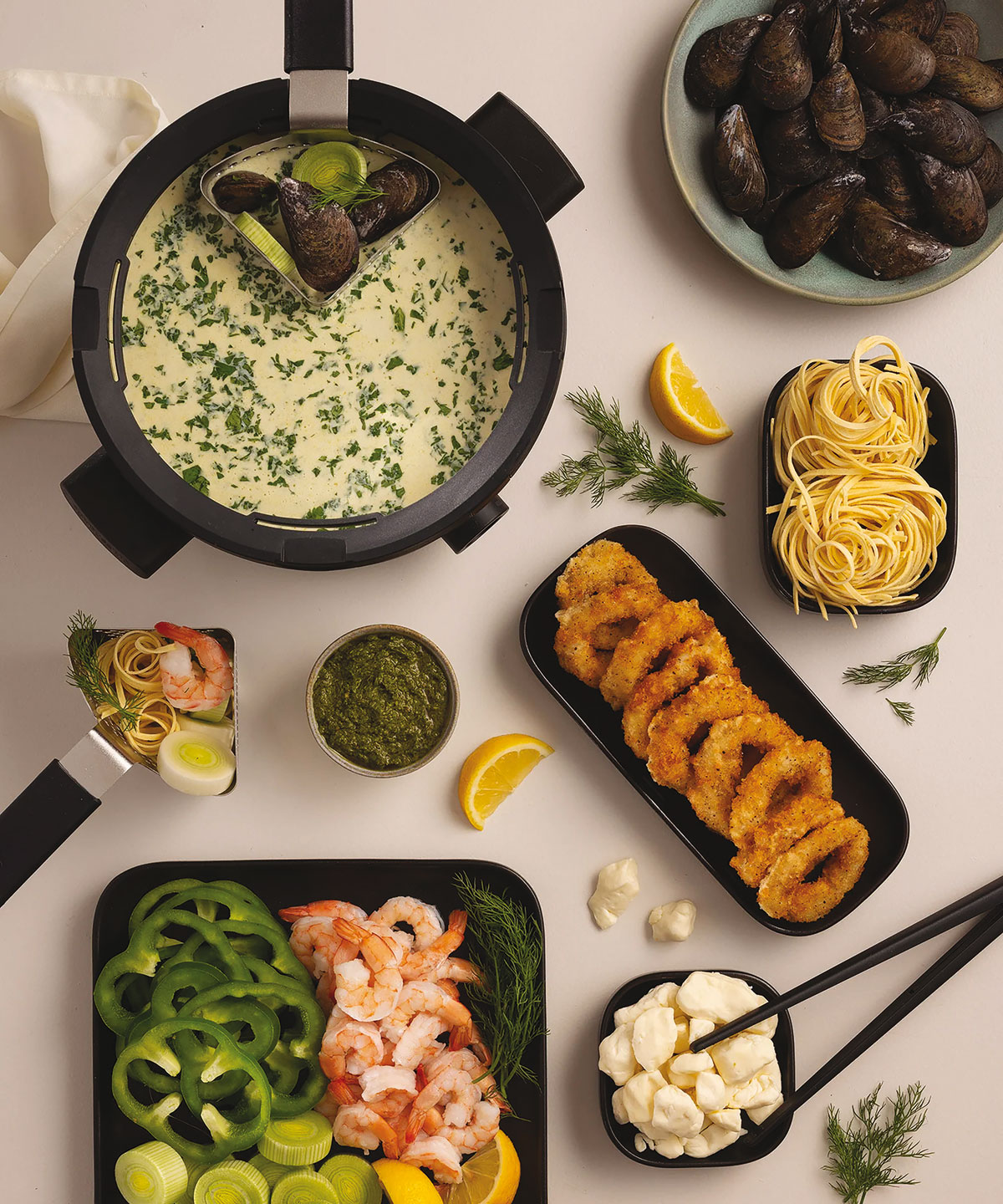 Pour le marché français, Fondussimo propose sa gamme Évolution, qui permet de réaliser trois types de fondues avec un seul appareil : fondue au bouillon, fondue au fromage et fondue dessert. Deux modèles : Évolution mini 3 en 1 (4 paniers) Évolution 3 en 1 (6 paniers). L’entreprise propose également des accessoires complémentaires, dont un ensemble d’assiettes modulables en porcelaine, ainsi que plus de 60 recettes gratuites disponibles sur son site web.
