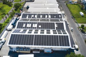 Avec cette centrale photovoltaïque, HOLDI Groupe évitera le rejet dans l’atmosphère de 240 Teq CO2/an (l’équivalent de la consommation de 110 foyers réunionnais) et a l’assurance que son bilan énergétique restera positif en intégrant ses besoins de recharge futurs. En effet, le groupe fait passer progressivement sa flotte de véhicules au tout électrique. C’est déjà le cas des chariots élévateurs de son entrepôt logistique LOG 2000. Une démarche où il fut pionnier dès 2010 en acquérant le premier modèle de chariot électrique frontal disponible à La Réunion (et, à la même époque, HOLDI Groupe mettait en place un des premiers systèmes de climatisation VRV de réfrigération à volume de réfrigérant variable beaucoup moins énergivore que les climatiseurs split-system couramment installées). Le remplacement des chariots fonctionnant au gazole s’est poursuivi après le déménagement de Cambaie vers la ZAC 2000 du Port en 2014. Ce fut ensuite le tour des trois véhicules de direction, puis d’un premier véhicule commercial. Il en sera de même du principal utilitaire de livraison aussitôt que les batteries de ce type véhicule seront à la hauteur des besoins en autonomie. Une démarche sur le long terme qui vient nourrir la trajectoire écoresponsable du groupe.