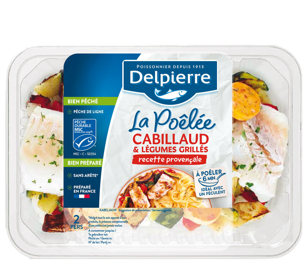 Tartares d’Algues. Delpierre propose une gamme inédite de tartares d’algues, préparée en Bretagne et déclinée en trois recettes : citron, nature et sésame. Une gamme 100 % végétale et bio. Source naturelle de nutriments, riche en vitamines, minéraux et fibres, l’algue se présente comme un substitut sain et durable aux produits traditionnels. Avec un marché en pleine expansion (+8 % en cinq ans), Delpierre accompagne cette tendance (format 90 g). Saumon Fumé à Cuisiner. Un usage du saumon fumé dans une version conçue pour être un ingrédient des plats du quotidien. Le processus de salage issu du savoir-faire historique de Delpierre offre un saumon au goût moins salé pour la cuisson. La présentation en tranches facilite son intégration dans diverses préparations culinaires (format 100 g). Poêlée du Poissonnier. Une nouvelle approche de l’élaboration et de l’accessibilité sur le segment poisson. Cette poêlée associe du cabillaud MSC pêche durable cru avec des légumes grillés (poivrons, aubergines, courgettes, oignons) et des galets de beurre à la provençale. Une recette prête en 5 minutes (format 350 g).