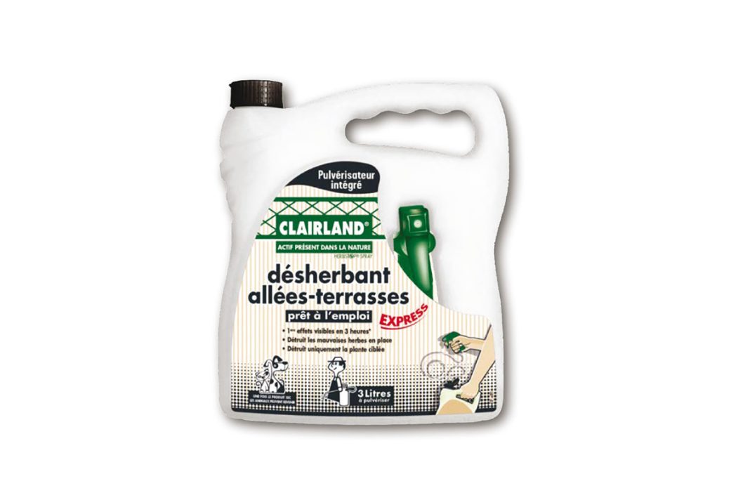 Terrasses, allées gravillonnées ou carrossables, cours, parkings… Pour se débarrasser des adventices, Clairland, leader des désherbants, propose parmi sa gamme de solutions biocontrôle, le Désherbant Allées & Terrasses Express à base d’acide pélargonique. D’un usage encore plus facile grâce à son nouveau bidon avec gâchette intégrée.