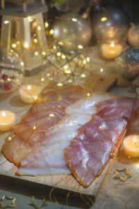 Un plateau de dégustation original et festif, réunissant plusieurs saveurs de poissons fumés : pavot-citron, poivre & baies roses de Madagascar et nature.