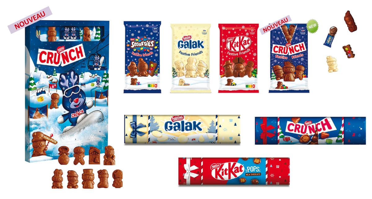 Entre Nestlé et les enfants, l’histoire est ancienne et se renouvelle de génération en génération. Ça va croustiller encore plus cette année sous les dents grâce à Crunch et son chocolat au lait au riz soufflé. Une offre complétée par un calendrier de l’avent. Des mini-figures Crunch rejoignent celles déjà bien connues des Festive Friends Smarties, Galak et Kit Kat. Les mini-figures se présentent cette année dans un nouveau format de sachet, mieux adapté aux standards du marché. Enfin, une nouvelle gamme de tubes géants Galak, Smarties Kit Kat et Crunch fait son apparition. Une offre à petit prix pour faire patienter les enfants jusqu’à Noël.