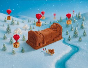 Les pions gourmands frais et fruités sont aux framboise amande ou mangue passion coco. Les rennes sont en chocolat croustillant.
