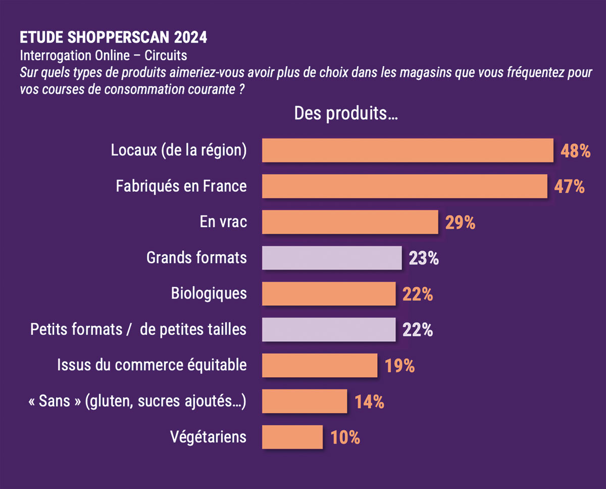 En matière d’offre, l’enseigne propose, en complément du tronc commun, des assortiments spécifiques avec une place importante accordée aux produits locaux (30 % de l’assortiment général en incluant fruits, légumes, œufs et viande). L’enseigne valorise les métiers de bouche (boucherie, charcuterie) avec un laboratoire de production intégré situé au sein de l’établissement de Saint-Joseph. L’enseigne étudie la mise en place d’une activité de traiteur. La place des MDD (36 % en métropole) est deux fois moindre. Le non alimentaire ne recule pas comme en métropole, grâce aux ventes de textile. L’arrêt des prospectus depuis deux ans a permis, notamment, d’investir dans la qualité des magasins. Malgré sa modestie (3 % du chiffre d’affaires ), le drive, né pendant la pandémie, est maintenu. E.Leclerc Réunion est prête à le développer dès que la demande se fera sentir.