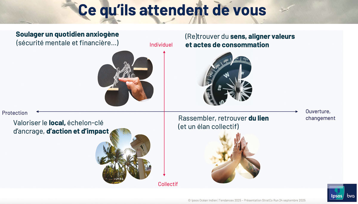 De plus en plus de consommateurs jugent, notent, ne se sentent plus liés par un pacte d’habitude et de confiance avec une marque ou un point de vente. « Pour 55 % des Réunionnais, chacun doit pouvoir consommer comme il veut, selon ses envies du moment. » Réaliste, il va là où ses moyens rejoignent ses envies.