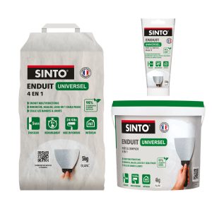 Ils permettent de combler les trous, fissures et gros défauts — sans limite de profondeur —, éradiquant les plus importantes imperfections. Les surfaces traitées par ces enduits Sinto, qui assurent un séchage rapide et sans retrait, sont prêtes à recevoir un enduit de lissage et une peinture.Ces enduits de rebouchage en poudre sont déclinés en formant 5 kg et 1 kg, afin de répondre à une variété de surfaces et de problématiques.