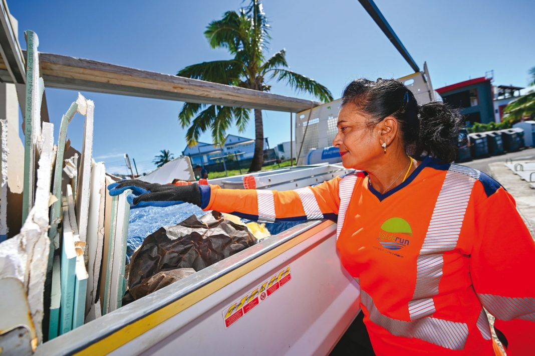 Au contact du public, les agents des 10 déchèteries de la Cinor, gérées par SUEZ Recyclage et Valorisation Réunion, assurent le pré-tri des déchets, un rôle clé pour favoriser leur recyclabilité. Exemple avec les agents de la déchèterie de Commune Bègue à Sainte-Suzanne.