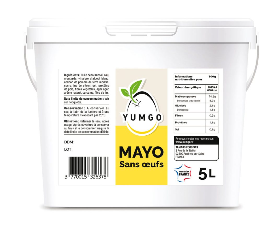 Yumgo, première gamme professionnelle complète de remplacement des œufs (œufs entiers, jaunes d’œufs, blancs d’œufs),propose une mayonnaise sans œufs.