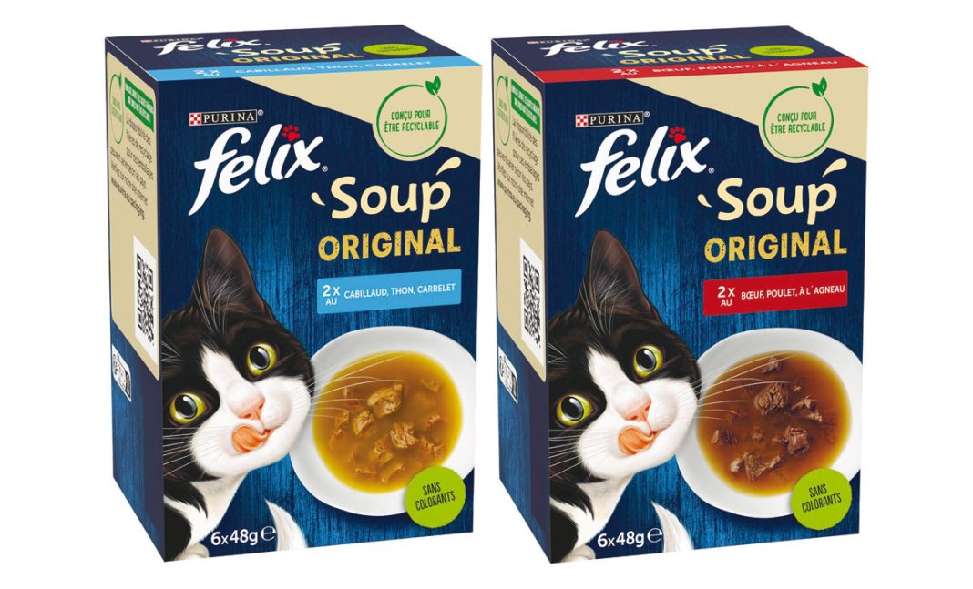 Leur forte teneur en eau couvre en partie les besoins journaliers en eau du chat. Elles sont sans colorants, sans arômes artificiels ajoutés, sans conservateurs artificiels ajoutés. Pour le chat, qui aime lapper et apprécie la texture lisse de la sauce, c’est le plaisir assuré. Une innovation de rupture dans le rayon. En format multipack 6×48 g.