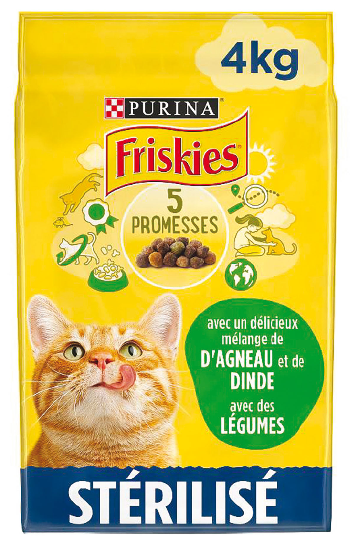 Friskies 猫粮火鸡, 鸡肉和火鸡与蔬菜的混合物, 和 Friskies 猫炸丸子配金枪鱼和蔬菜 : 这两个参考资料均以 2 公斤格式包装. Friskies 猫羊肉粗粮, 羊肉和火鸡与蔬菜的混合物, 和 Friskies 粗磨食品,用于绝育猫鲑鱼和金枪鱼食谱与蔬菜 : 另外两个参考文献是, 他们, 提供 4 公斤规格. 和所有 Friskies 食谱一样, 它们没有染料, 人工香料和防腐剂,并提供动物健康所需的所有营养品质. 由于平衡的蛋白质和脂肪比例,它们有助于保持猫的理想体重。. 由于均衡摄入矿物质,它们有助于维持健康的泌尿系统, 以及牛磺酸对心脏的维护和良好的视力. 它提供维生素 E,有助于支持其自然防御. 绝育猫可能容易超重并出现泌尿系统问题, 普瑞纳专家为绝育猫开发了 Friskies 配方,以满足其特定需求.
