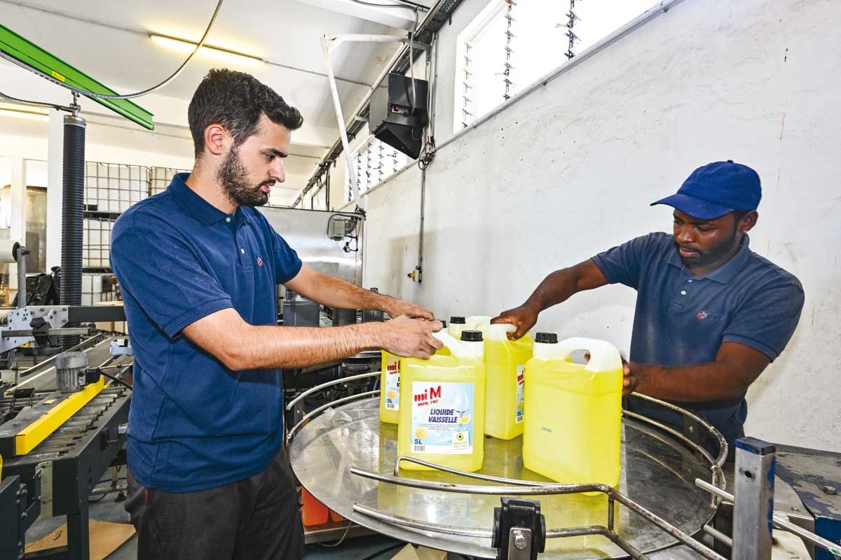 新 EECA 项目的起源, 因此,勒克莱尔向留尼汪岛提出了这一请求 : 该分销商希望以当地制造商的自有品牌为客户提供大系列洗碗液. Mi M mon Caz 品牌由此诞生, 在 Leclerc 商店独家经销. 凭借其新设备, EECA 现在不仅掌握混合物, 其基础工业职业, 但他们的包装是用瓶坯生产自己的瓶子. 该公司计划销售其他三种规格的洗碗液, 除了5L容器外, 透明包装中的 péi 香水, 现代和审美. 向高端市场迈进将铺平道路, 套间, 到其他产品 : 浓缩洗碗液, 洗衣液, 织物柔软剂, 地板和墙壁清洁剂, ETC.