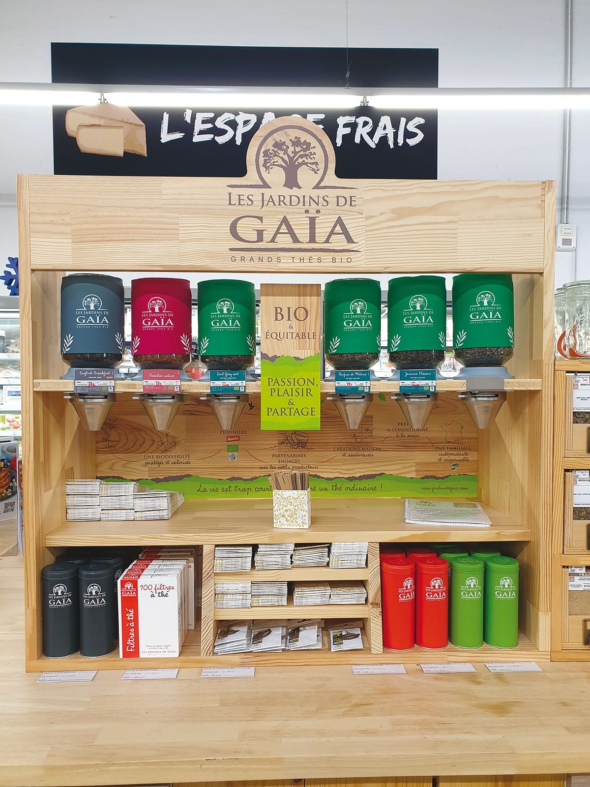 法国制造,采用 FSC 认证实木, 该批量单元为经销商的销售点提供了解决方案. 它由六个密封玻璃筒仓组成, 筒仓盖可保留香气并保护茶叶避光. 具有自助、非接触式分配系统, 它保证了高水平的卫生以及简单快速的清洁. “这件家具使商店能够脱颖而出,并通过新的散装类别使产品多样化来提高销售额”, 强调了该品牌自成立以来就致力于生态设计和减少包装. 六仓柜尺寸 : 长度, 99,4厘米 ; 高度, 102,9厘米 ; 深度, 40厘米, 或根据商店量身定制. 还可以在 12 个筒仓中使用. 该装置随附筒仓盖和配件 : 可重复使用的金属管, 再生纸袋, 计时器, 茶钳和茶滤器. 有了这个创新, 盖亚花园鼓励消费者转向散装, 无包装消费法.