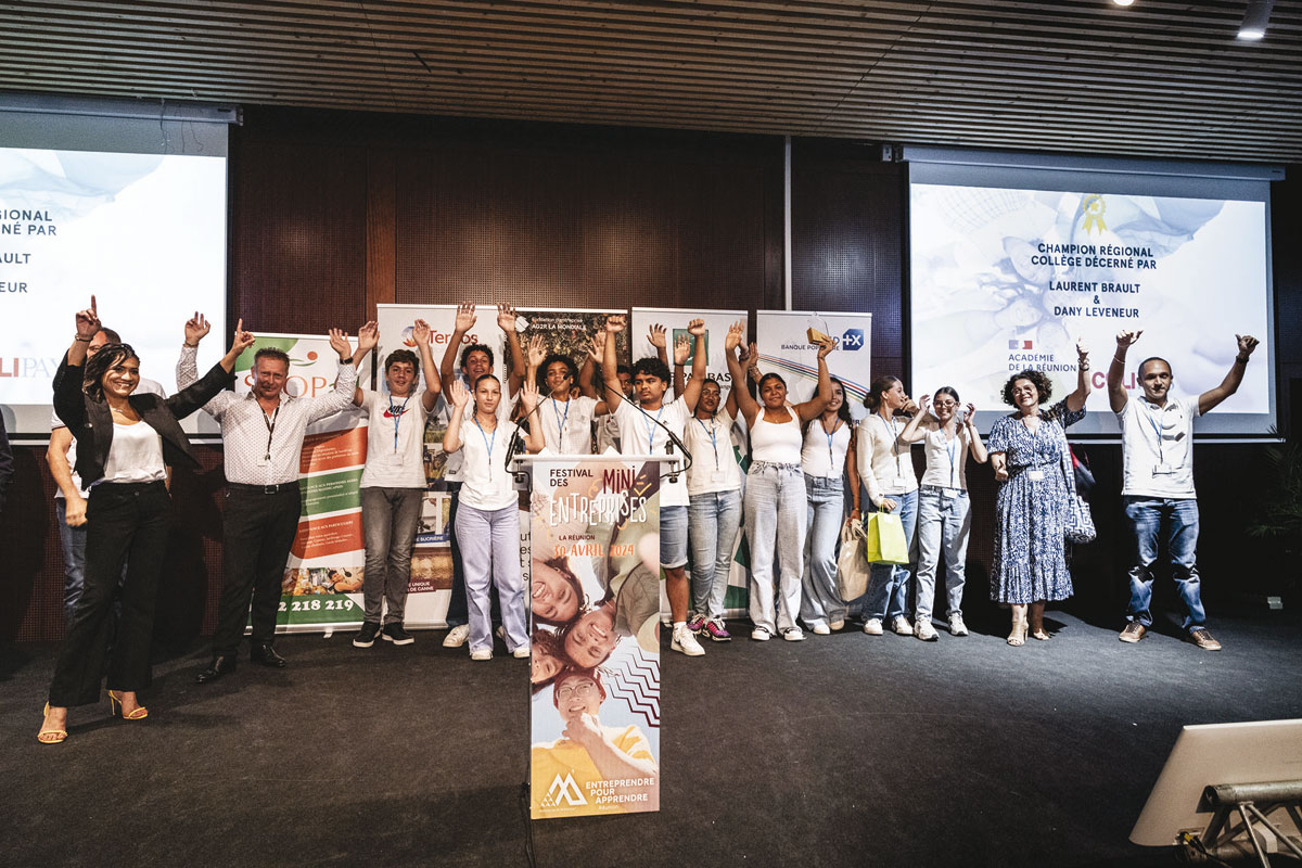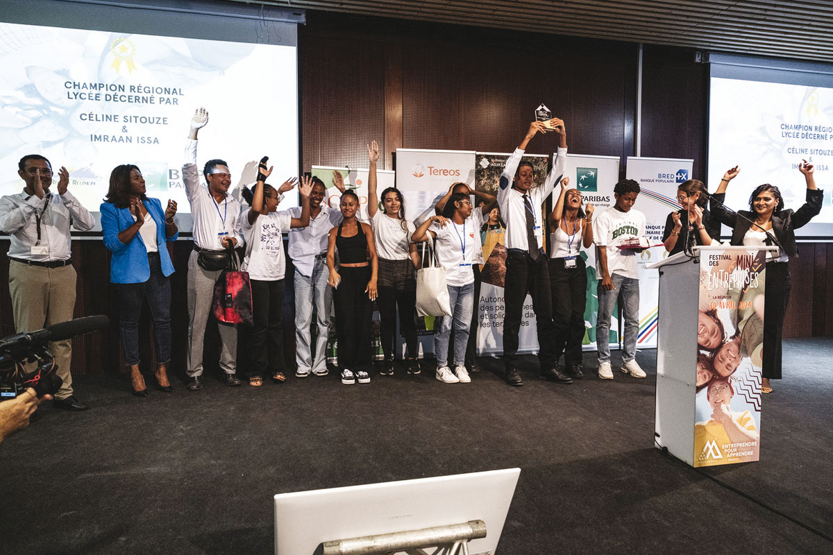 今年, 一千多名学生参与创建了约六十个微型企业, 所有人都热情地在由商界领袖和教育界成员组成的评审团面前展示. 这些年轻的小企业家竞相赢得八个奖项, 其中有两款今年的新产品 : 学校的价格 (对于最年轻的) 和 Défi Péï 奖, 奖励最能应对经济挑战的举措, 留尼汪岛的社会和环境问题. 4月30日, 其中 39 家小型公司出席了展会 : 30人参加2024年地区赛, 其中九个来自与节日的三个合作伙伴建立的特定课程, 布雷德, 三星与法国基金会. BRED和三星迷你公司参加了特定的国家级比赛. 初中和高中地区冠军将在迷你企业节全国决赛中捍卫团圆的色彩, 6月6日 巴黎沙莱蒂体育场.
