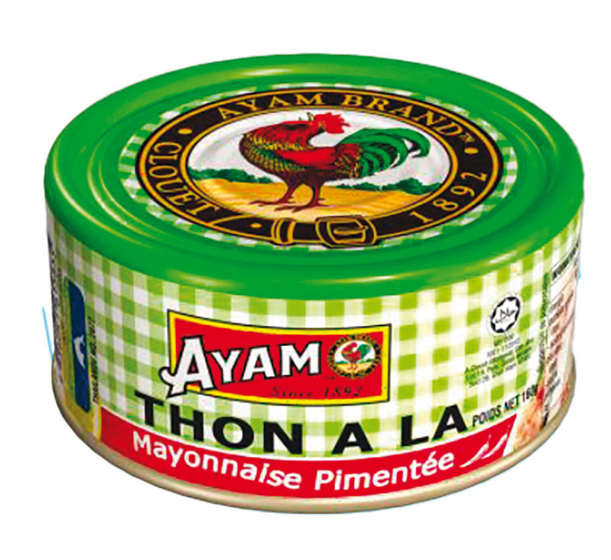 品牌, 已经提供了一罐辣金枪鱼, 决定用六种新食谱来完成这个系列. 在食谱方面将新的东西带到相当有限的范围内, Ayam 向我们介绍了多种金枪鱼罐头供我们搭配各种酱汁食用。. 雄鸡金枪鱼系列现在包括 7 种 150 克罐装规格的产品。 : 雄鸡辣金枪鱼, 雄鸡金枪鱼天然蛋黄酱, 雄鸡金枪鱼配辣蛋黄酱, 雄鸡金枪鱼配甜蛋黄酱, 雄鸡特级辣金枪鱼 特级初榨橄榄油雄鸡金枪鱼, 水中添加了最传统的雄鸡金枪鱼碎屑. 这一系列的食谱根据留尼汪岛的口味促进和增加了金枪鱼的用途。. 有了这个新系列, Soric 打算增加其超市产品并为消费者提供选择.