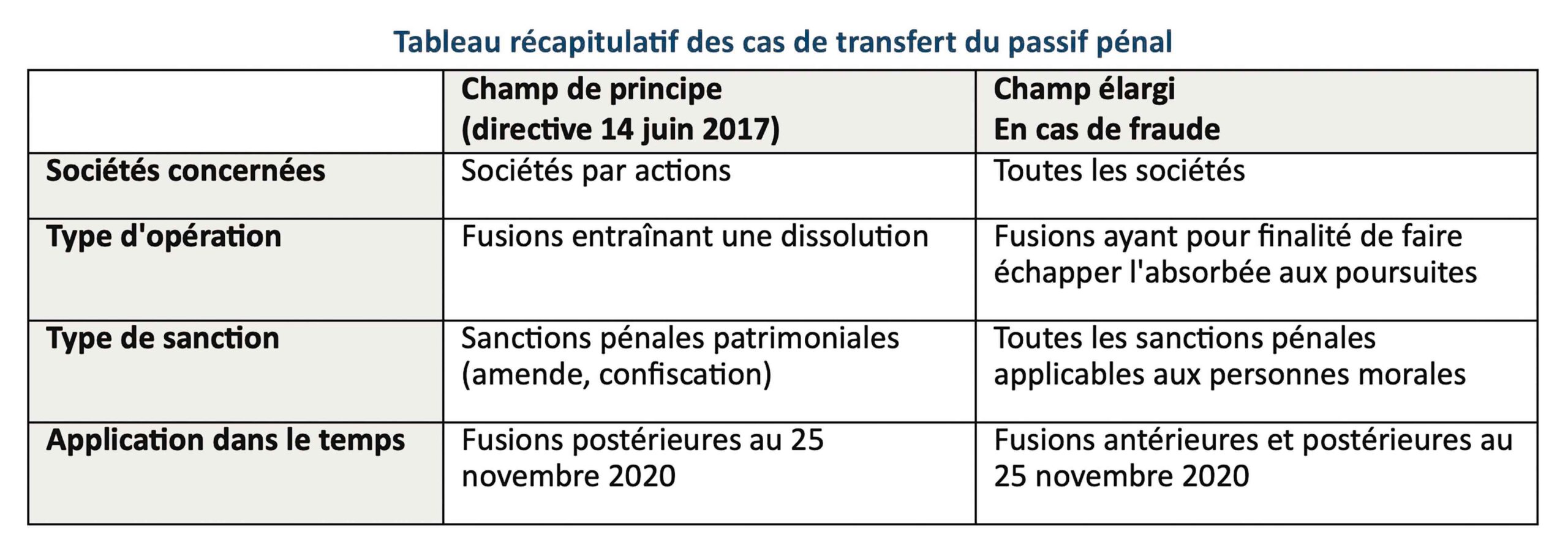 袭击了一家公司的档案存储仓库. 这就是当时起诉的主题, 因为它没有履行安全义务. 或者, 刑事法庭听证会前几个月, 发生了合并吸收. 经过多次尝试, 最高法院确认, 2020 年 11 月*, 吸收公司的刑事定罪. 为什么会有这样的发展 ? 法国法律承认法人实体的刑事责任已有20多年。. 然而, 迄今为止,传统上拒绝合并交易期间刑事责任的转移. 这个解决方案在句子个性原则中找到了合理性 : 被吸收方的法人实体消失, 这种失踪被等同于自然人的死亡,导致公共行动的消失. 最后, 合并的完成使被吸收的公司逃避了刑事责任.