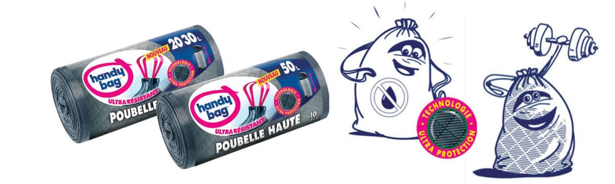 正是基于该品牌33%的消费者将垃圾袋的规格和容量作为主要衡量标准的观察,Handy bag推出了专为高大垃圾桶设计的超耐磨垃圾袋。. 它们结合了超防护技术 (与三层厚度薄膜相关的框架) 通过防漏底座增强阻力,保证密封性. 该系列包含两种型号, 用于 20 至 30 升高位垃圾箱的袋子和用于 50 升高位垃圾箱的袋子. 得益于其集成的滑动手柄, 这些大尺寸袋子易于关闭和运输.